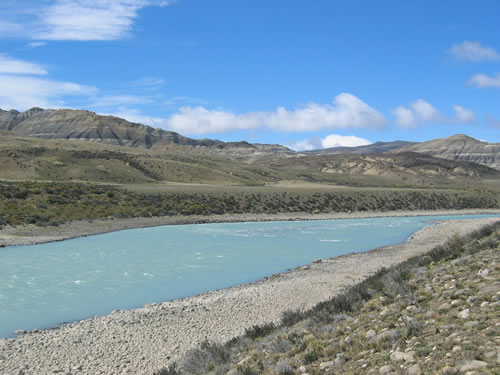 Les eaux de la rivière, chargées de silice érodée par le glacier ont ce bleu particulier.