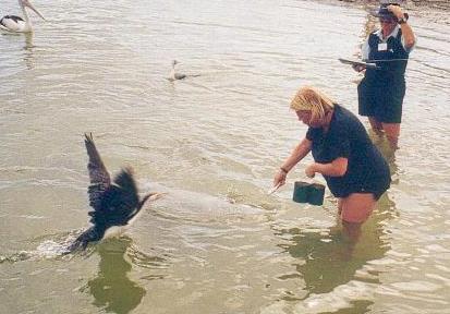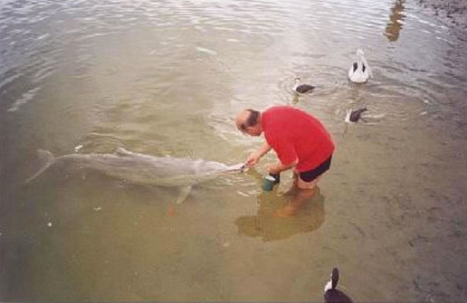 En 2000, le Lonely Planet indiquait qu'à Tin Can Bay, un petit village au nord de Brisbane, des dauphins venaient très souvent vers 8h du matin au débarcadère et qu'on pouvait les nourrir.