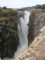 M 1/11 Départ pour Epupa Falls au bord du Kunéné, à la frontière de l'Angola. Piste correcte en cette saison sèche avec un petit passage dans le sable. Les himbas que nous avons rencontrés nous ont souvent fait signe de nous arrêter : ils réclamaient quelques chose. Himbas veut dire mendiant. Nous avons rencontré de grands troupeaux de vache et de chèvres. L'arrivée à Epupa est semblable à celle d'une oasis : aprèsla piste au milieu des buissons voici tout en bas les palmiers, le fleuve et les chutes. Superbes chutes dans une gorge. Le jour de notre arrivée l'eau passait dans des petits canaux dans lesquels nous avons pu nous tremper sans risque. Le lendemain ils étaient à sec. Là aussi un petit camping communautaire est installé au bord du Kunéné, à proximité immédiate des chutes. Nous avons vécu près des himbas. Un petit stand propose des colliers, statuettes etc... Prix intéressants, pas de sollicitations intempestives.