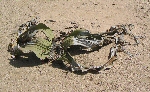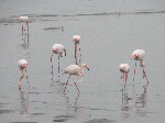 D 6/11 Le beau temps nous réveille. Face à notre chambre les flamants roses vaquent à leurs occupations. Nous partons explorer la vallée des Welwitchias, ces plantes, véritables fossiles végétaux, qui développent leurs deux feuilles dans le désert. Paysages lunaires garantis. Un terrain de camping dans un vallon. Nuit à Walvis.