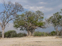 J 27/10 Départ pour la bande de Caprivi. Une longue route droite dans ce corridor de 400km. La route est presque constamment bordée de villages de cases, souvent entourées d'une palissade de bois ou de grandes herbes. Quelques arrêts pour manger ou se dégourdir les jambes. Où que vous vous arrêtiez, même si aucune vie humaine ou case n'est en vue, vous pouvez quasiment être sûrs de voir apparaître des enfants. A Kongola nous prenons la piste vers le Botswana. Voici les chutes de Popa Falls ne nous ont convaincrons pas, peut être parce que nous étions à la fin de la saison sèche et que leur débit était limité. Visite du Namili National Park, qui s'étend le long du Zambèze. Superbes baobabs, éléphants et rhinos.