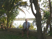 Me 26/10 Départ pour Rundu, étape vers la bande de Caprivi. Nous repassons au point d'eau d'Andoni, très fréquenté. A la porte du parc, contrôle de sortie: le garde demande la preuve du paiement de l'entrée et des nuitées. Il manque un ticket enlevé à Namutoni, pas moyen de joindre le camp, il faudrait repayer. Enfin voici le ticket de Carte Bleue. Nous partons au milieu de vastes plaines et des grands troupeaux de vaches. Puis ce sont des séries de cases sommaires qui longent la route au bord de laquelle sont présentés les produits à vendre : espèce d'orange à la peau très épaisse, poteries, bois, hautes tiges utilisées pour faire des enclos. Des chèvres en liberté coupent la route. Ça et là de petites constructions en parpaings, les cuca stores proposent de la bière. Nous arrivons enfin à Rundu. C'est l'heure de la corvée d'eau et les habitants convergent vers les points d'eau avec leurs ustensiles. Nous installons dans le camping d'un lodge, sur les berges de l'Okavango. Je demande à la propriétaire du lodge si elle est allemande, elle me répond un peu sèchement qu'elle est native de Namibie mais que ses arrières grands parents étaient allemands. Nous tournons notre camion pour que la tente donne sur le fleuve. Les sanitaires sont installés au bord du fleuve et nous avons vue sur les hippos en prenant notre douche .A la tombée de la nuit, comme chaque soir le vent se lève mais là nous aurons un tel coup de vent pendant deux minutes que notre tente de toit s'est repliée et que tout son contenu a été éparpillé par le vent. Assis sur une vieille pirogue retournée, qui a été creusée dans un tronc d'arbre nous sirotons notre apéritif quand nous entendons, 2 mètres en contrebas, sur le fleuve, le grognement d'hippos. Un contrôle poussé nous rassure, la berge est trop abrupte pour qu'ils montent à cet endroit. Nous apprendrons qu'ils sont venus la nuit précédente manger les grandes herbes de la prairie qui jouxte notre camping, dommage que ce soir là ils ne soient pas venus.